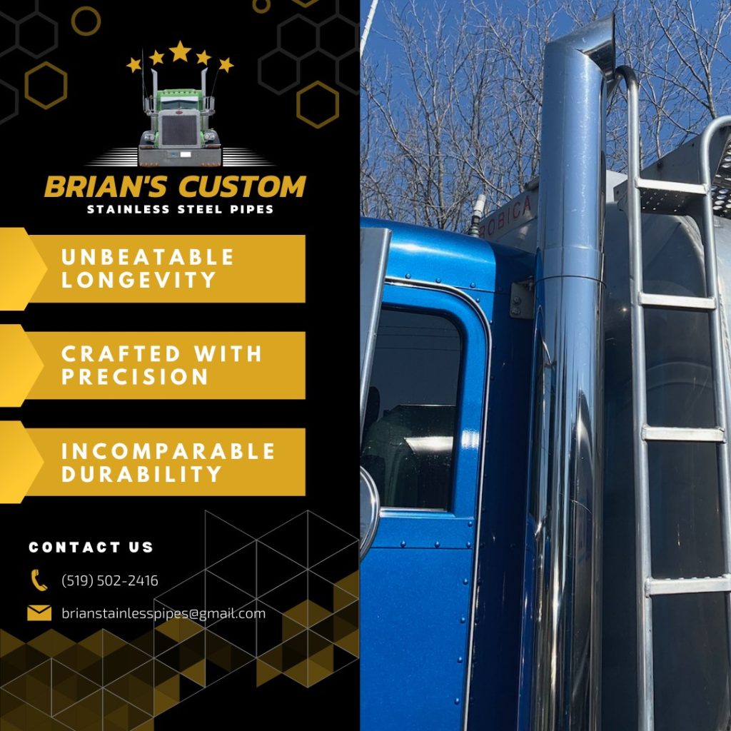 Quality makes a statement that lasts. Invest in your truck’s future with Brian’s Custom Stainless Steel Pipes.