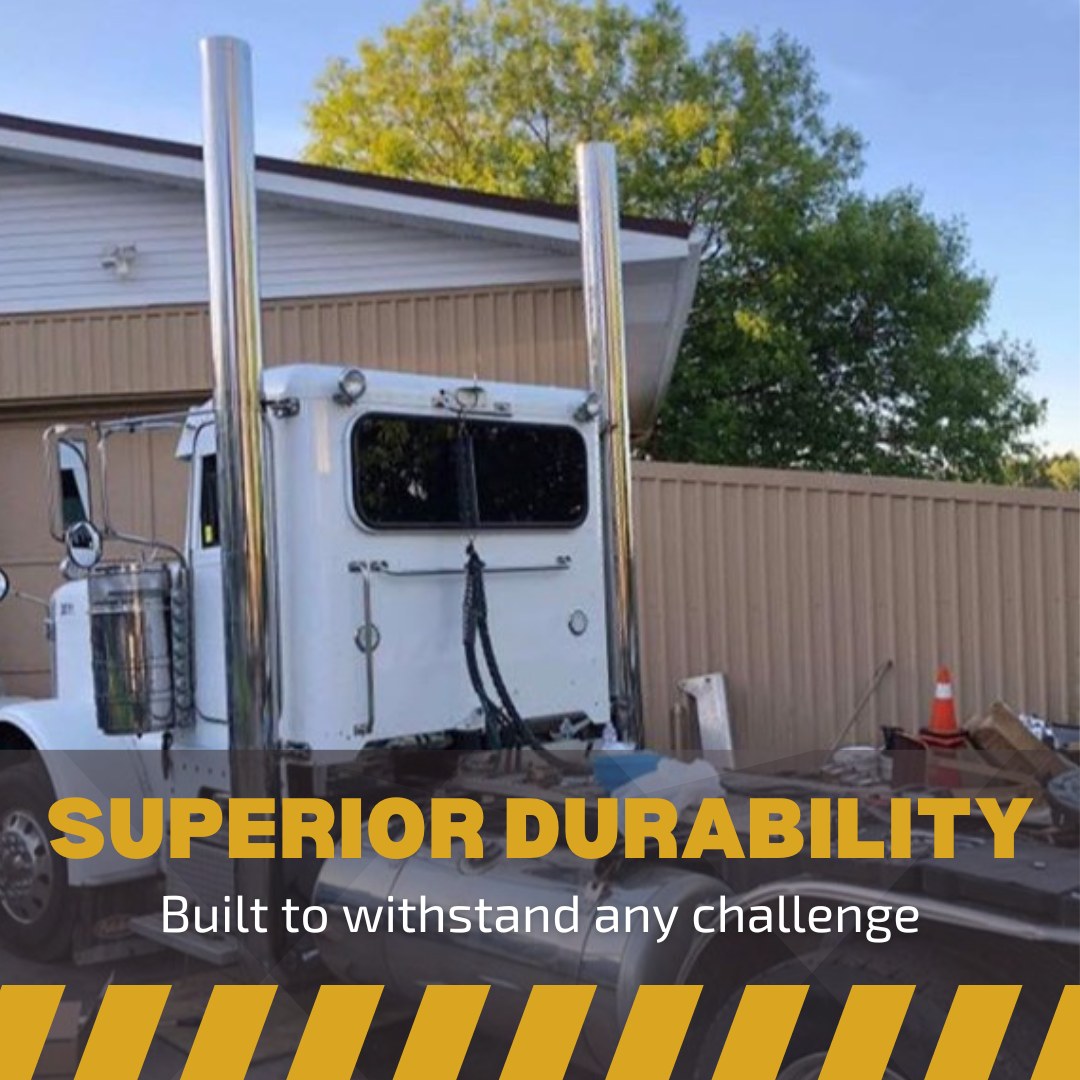 Our pipes are meticulously crafted with precision, ensuring unmatched quality and durability that stands the test of time. Experience the unbeatable longevity of our custom pipes, designed to elevate your trucking game to new heights. From their corrosion resistance to their enhanced performance, our pipes are engineered to exceed expectations. Upgrade your truck today and redefine excellence with Brian’s Custom Stainless Steel Pipes!