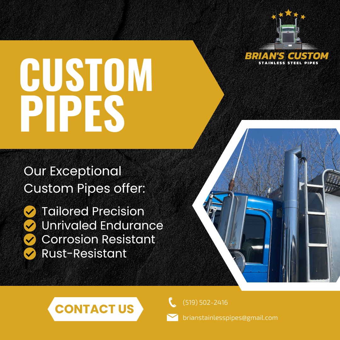 Quality makes a statement that lasts. Invest in your truck’s future with Brian’s Custom Stainless Steel Pipes.